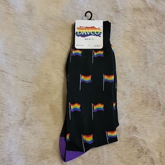 MEN'S DAVCO BLACK RAINBOW FLAGS CREW SOCKS, NEW!