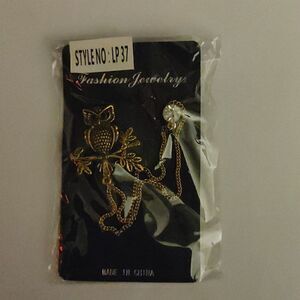 Ckear stone mounted in a high quality gold abstract setting. Owl Image.