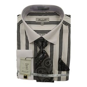 MEN'S FRATELLO TRIPLE STRIPED WHITE COLLAR FRENCH CUFF DRESS SHIRT. FRV4159P2.