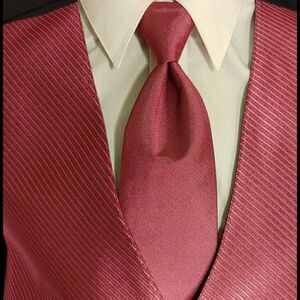 Solid Coronado diagonal fuschia stripe vest with premade Windsor tie and pocket square