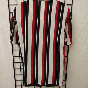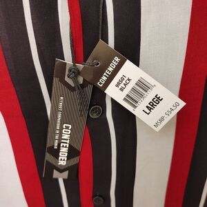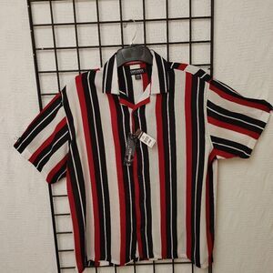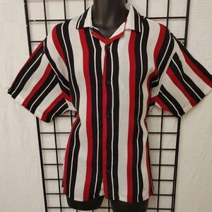 MEN'S REGAL WEAR 100% RAYON SHORT SLEEVE MULTI-COLOR STRIPE CAMP COLLAR SHIRT.