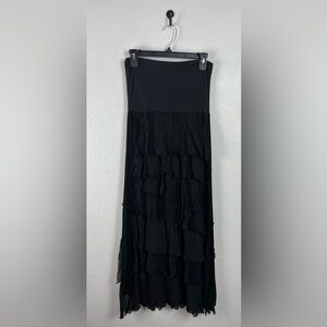 MEO MELL Black Ruffle Midi Skirt Sz OS Witchy Grunge Dress Whimsigoth goblincore