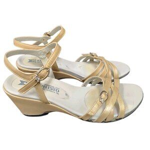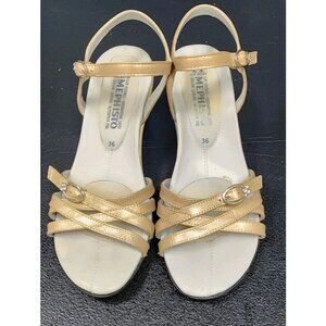 MEPHISTO Air Relax Metallic Rhinestone Leather Wedge Sandal Shoes 36 US 6 Straps