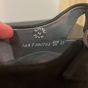These shoes are brand new without Box. Please see photos for details and feel free to ask any questions if interested. They are a suede type leather. That is why the photos look a little discolored, but there’s absolutely nothing wrong with these shoes