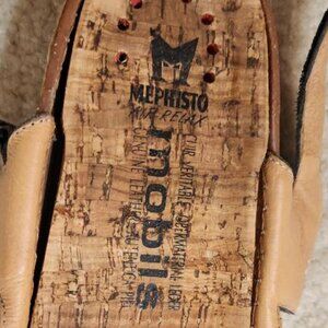 These sandals are the AIR RELAX MODEL with the shock absorber heel built in. They are made of genuine leather with a snake skin toe strap. The European size is 36 which is a U. S. size6. They are in very good condition with minimal wear.