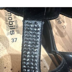 MEPHISTO Mobils Air-Relax Vernicalf Felizia Black Patent Leather Rhinestone Velcro Wedge Sandals Size 37 (US 7-7.5) Worn 1x
