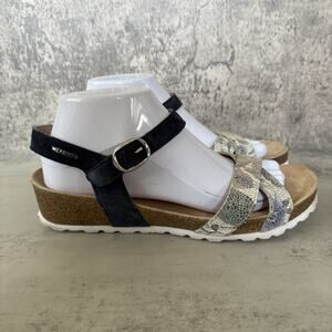 The MEPHISTO Stela Light Sand Metallic Leather Sandals in Women's size 10 (US) or 40 (EU) are a stylish and comfortable choice for warm weather. The solid beige color, low wedge heel, and strappy design make these sandals versatile for various outfits. The adjustable buckle closure ensures a secure and personalized fit. Made with high-quality leather with a metallic finish, these sandals are not only fashionable but also durable and comfortable for everyday wear. Perfect for adding a touch of elegance to any casual or dressy ensemble.