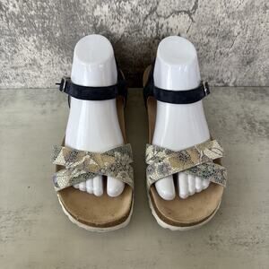 MEPHISTO Stela Light Sand Metallic Leather Sandals Womens Sz 10 US 40 EU