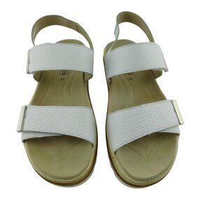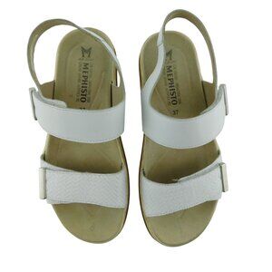 MEPHISTO White Herringbone Leather Strap Lug Sole Platform Sling Sandals 37