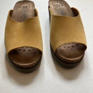 MEPHISTO leather/ suede wedge in yellow. Great condition with little signs of wear. Air relax, authentic pile. size 7 EUR 37