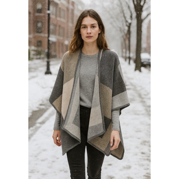 MERCANTILE PORTLAND LUXURY WRAP SHAWL CAPE COLORBLOCK NEUTRALS WATERFALL WOOL