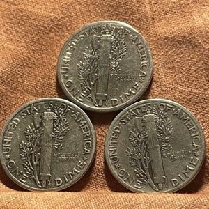 MERCURY DIMES - LOT OF (3) - WAR YEARS, 1941-1942-1943 90% SILVER. WELL DEFINES LINES-GREAT CONDITION FOR OVER 80 YEARS OLD #204329695154