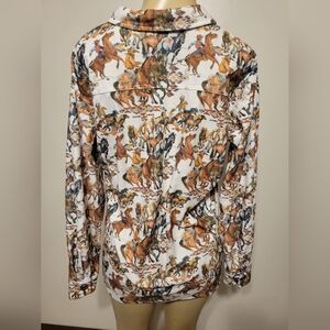 MERIGOLD KISS Button Up Long Sleeve Aztec Farm Rodeo Western Horse Print
