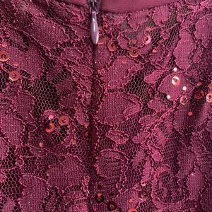 MERLOT HALTER LACE DRESS W/ ILLUSION CUT