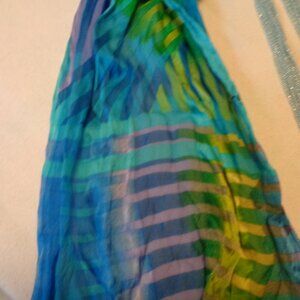 MERMAIDCORE UNDERSEA SCARF & STARFISH BEADED NECKLACE LOT. THIS IS A WONDERFUL LOT. WE DO NOT BREAK UP LOTS NOR BUNDLES. THERE ARE 2 ITEMS IN THIS LOT. THIS LOVELY UNDERSEA COLORS SCARF AND THIS PRETTY BLUE BEADS AND STARFISH NECKLACE. SCARF HAS LITTLE SOFT PLEATS. BOTH THE SCARF AND THE NECKLACE DO NOT HAVE THEIR BRANDS LISTED. WITH SOME WEAR ON SCARF AND LIGHT WEAR ON NECKLACE. ENJOY THE MERMAID LOOKS. 3RD GROUP. #840. THANKS