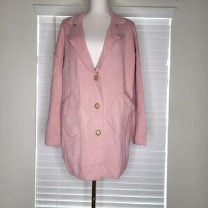 MEROKEETY Blush Long Sleeve Open Front Button Lapel Cardigan Glinda Size L NWT