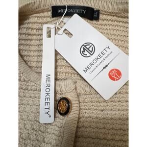 Merokeety Button Down Sweater Cardigan with Pockets Cream NWT Size XL