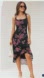 MEROKEETY Floral Midi Bodycon Dress Square Neck Sleeveless Ruffle Hem Black XL
