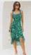 MEROKEETY Floral Midi Bodycon Dress Square Neck Sleeveless Ruffle Hem Green XL