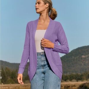 Stay cozy and stylish with this elegant purple sweater cardigan. Perfect for layering, it adds a pop of color to any outfit.