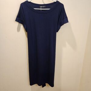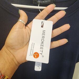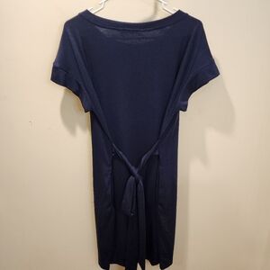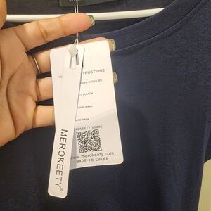 MEROKEETY Navy Blue Casual Knee Length Dress With Pockets Size L NWT