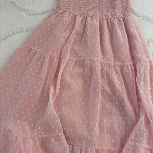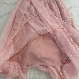 What a beautiful and fun summer dress! The flowy ruffle skirt is designed with unique swiss dots, wear it and walk barefoot on the beach by the sea for a carefree summer feeling. Can be paired with heels or sneakers for a sweet outfit.