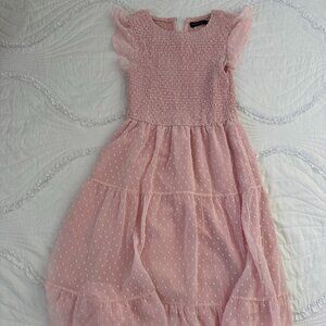 MEROKEETY Swiss Dot Flutter Sleeve Smocked Midi Dress