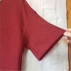 MEROKEETY Waffle Knit Flowy V-neck Tee Small