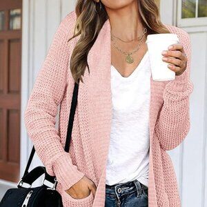 MEROKEETY Womens Long Sleeve Pink Open Front Cardigans Chunky Knit Draped Sweater