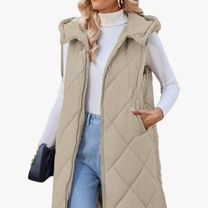 MEROKEETY Womens Sleeveless Quilted Long Puffer Vest Hooded