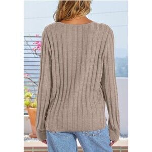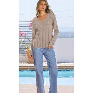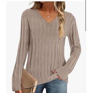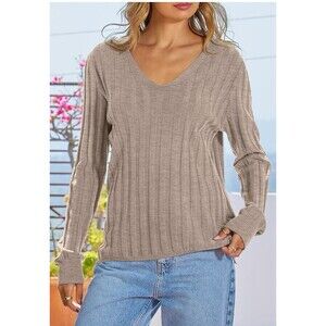 MEROKEETY Women's V Neck Sweater Long Sleeve Ribbed Knit Casual Slim Fit size S