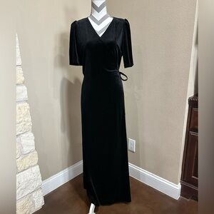 MEROKEETY Women's V Neck Wrap Velvet Maxi Dress Bell Sleeve, NWT!