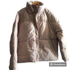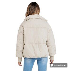 MEROKEETY Womens Winter Long Sleeve Zip Puffer Baggy Short Down Coat S Beige NWT