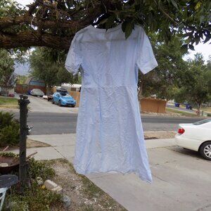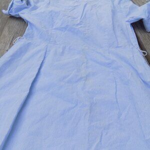 ITEM : THIS IS NOT NEW IT IS A USED light Weight Dress. Light Blue Stripes on it and buttons up the front of it. Fun Ruffles by the buttons. . It has Normal handled Wear to it. Very Light weight and cute. Great for those Hot Days.. IT WILL NEED A LIGHT CLEANING. It is a small 6..