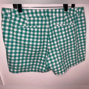 MERONA, 14 gingham, green/ white check print 4pocket, button zip shorts