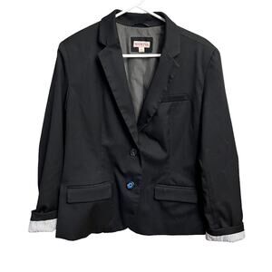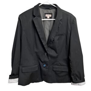 MERONA Black Button Up Blazer Striped Cuffs Size 14