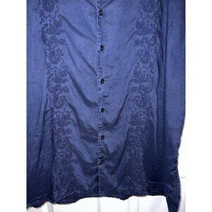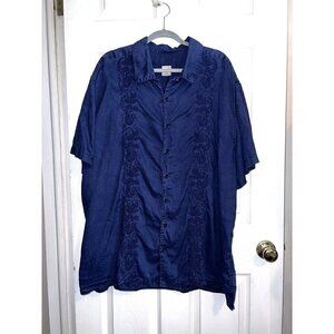 MERONA Navy Linen Button Down Short Sleeve Shirt Embroidered Sz XXL