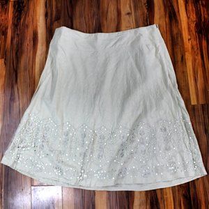 MERONA Neutral Linen, Sequin Embellished, A-Line Midi Skirt