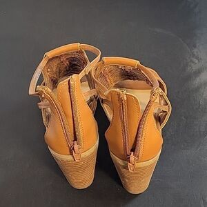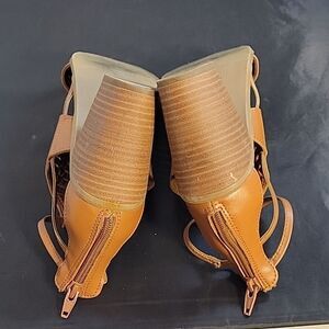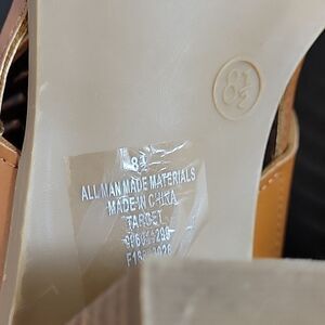 MERONA PEEP TOE CUTOUT WOMEN"S WEDGE STYLE SANDAL SIZE 81/2 COLOR CONGNAC BROWN These peep-toe cut-out heels are a sunny day must have! With their stacked block heel and trendy cut-outs, they're essential to wear to brunch with your girls. They'll be perfectly styled with a jumpsuit or a sweet simple dress. made with all man-made materials Fit & Features Peep-toe Cut out detailing Adjustable pin-buckle closure Ankle strap Stacked block heel Faux leather THIS ITEMS IS PRE-OWNED EXCELLENT CONDITION WITH ONLY LIGHT SIGNS OF WEAR IF ANY CHECK THE PICTURES