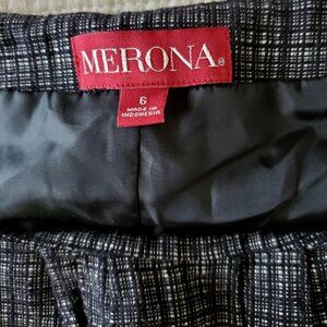 MERONA SHEATH DRESS SIZE 6 PLAID TWEED SIDE ZIPPER SHORT BELT FULLY LINED
