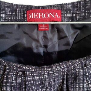 Black and gray plaid tweed fabric. Fully lined, side zipper closure, belt.
