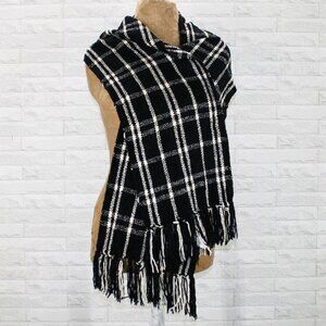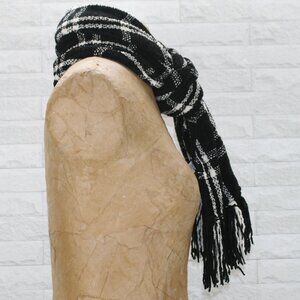MERONA Scarf Woven Narrow Thin Classic Black White Fringe Winter Accessory