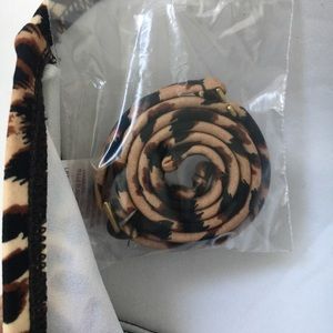 Molded bust line, twisted center and pleated sides, side bones for stability, elasticized back. Chiffon bodice, removable halter strap. Pair this top with a black, brown or tan bottom for a stunning look. Size 38C/Large. NWT.