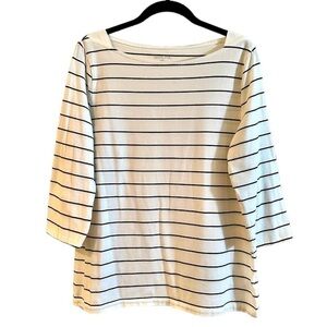 MERONA, WOMENS, BOAT NECK,3/4 SLEEVE TOP. WHITE WITH A THIN LINE STRIPE.SIZE XXL
