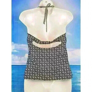 MERONA Woman's TANKINI Top NAVY BLUE & WHITE Bathing Swim Suit Pad Bra size Med