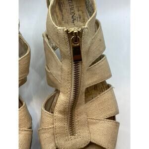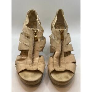 MERONA Women's Tan Alexa Strappy Peep-Toe Cork Wedge Sandals SZ 11