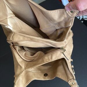 Bag has plenty of space/compartments and pockets. Wallet as well plenty of card slots and middle coin zip. Great condition. Worn a couple of times.