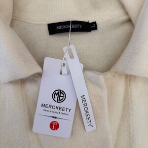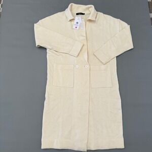 MEROOKEETY Knit Duster Cardigan Open Front Pockets Cream Size L