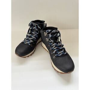 These Merrell Women’s waterproof hiking boots feature a sleek black leather upper, rugged rubber outsole, and vibrant two-tone laces. Designed for trail support and everyday comfort, they’re ideal for outdoor adventures or urban wear. Size 7.5 but runs slightly small.