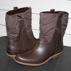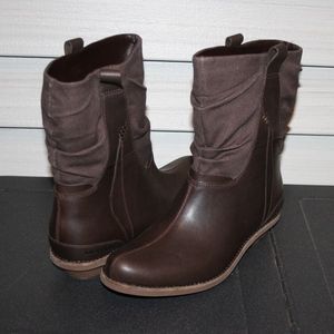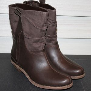 MERRELL ADALINE MID 8.5 Woman's Pull On Boot Brown Leather Mid Calf Casual